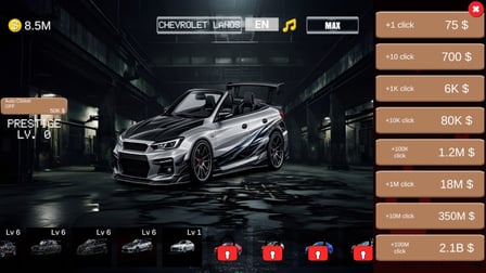 In Car Evolution Clicker, players experience a minimalistic approach to car upgrades. Each vehicle, with its own unique maximum level, evolves automatically with every tap that fills the progress bar. With visually appealing designs and a smooth user interface, the game offers a seamless and enjoyable experience. The thrill of unlocking new cars keeps players engaged as they explore a variety of models evolving before their eyes.