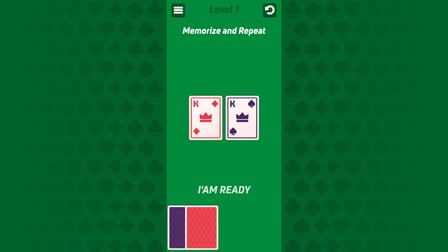 To begin playing Cards for Memory, follow these steps: 1. Use your mouse or touch to start the game; you’ll be presented with a grid of facedown cards. 2. Memorize the card placements quickly. 3. Tap or click on the cards to reveal them one by one and find matching pairs. 4. In simple mode, match pairs of identical cards, while in beat mode, find a higher card of the same suit to beat the displayed card. 5. Keep playing until all pairs are found, aiming for the highest score without making mistakes!