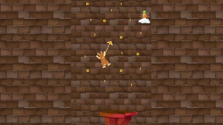 Start by dragging the bunny to set the jump power. Release to hook onto the next platform. Continue jumping and climbing until you reach the carrot, which signifies the completion of the level. Each level presents new challenges, requiring you to adapt your strategy and refine your skills.