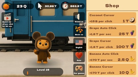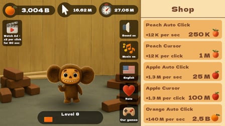 The comedy of transformations and the beloved nature of Cheburashka makes each stage exciting and enjoyable, encouraging players to keep tapping for more exquisite upgrades!