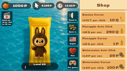 Playing Evolution from Cheburashka to Labubu is as easy as 1-2-3! Just tap or click to collect fruits and upgrade Cheburashka's skills. Monitor your fruit count closely, as you'll need a specific amount to evolve. Stay engaged, and watch as your character transforms into various exciting forms!