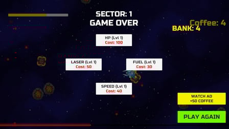To dive into Coffee Raiders: Space Roguelite, simply open your web browser. Use the arrow keys to navigate your ship and the space bar to mine asteroids. When you collect enough resources, head to the shop to upgrade your laser, speed, armor, and fuel tank. Each run enhances your ship’s capabilities and brings you closer to conquering the universe!