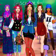 You start by selecting one of the college girls from the lineup. A vertical menu pops up on the right side with clothing categories—dresses, skirts, tops, pants, shoes, accessories. Tap or click through the options to preview items on your character instantly. The interface is oversized and touch-friendly, so even on a phone, you won't misclick.