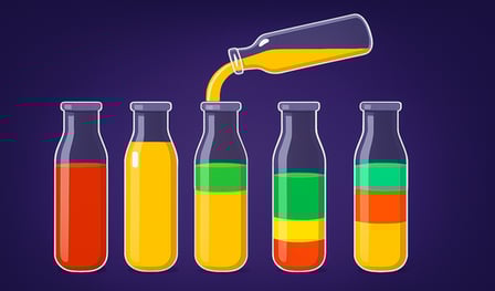 - On your computer: Use your mouse to click and drag the colors from one bottle to another.