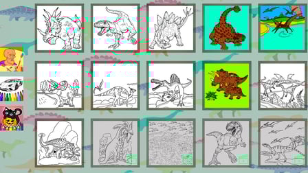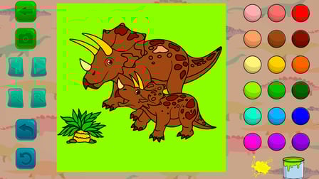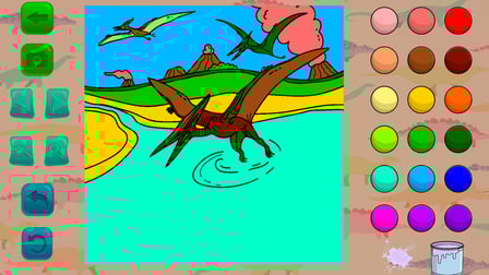 Playing "Coloring Book: In the World of Dinosaurs" is straightforward: 1. Select your desired dinosaur image from the app's selection. 2. Choose colors using your mouse on a computer or from the color palette on your phone/mobile device. 3. Tap or click on sections of the dinosaur to color them. 4. Use the zoom feature for detailed work and don’t forget to save your artwork before you exit!