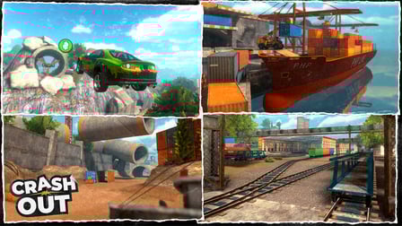 In CrashOut, players can choose from over 15 beautifully designed cars ranging from pickups to luxury sedans. Each vehicle is equipped with realistic damage physics that heighten the engagement. Experience massive crashes that result in spectacular wreckage, broken windows, and even fire, contributing to a hyper-realistic simulation of car destruction.