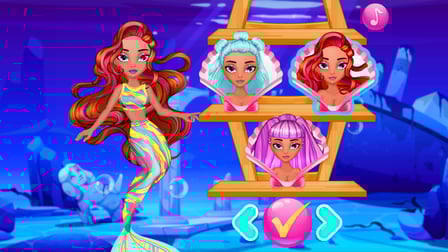 Diamond Mermaids features intuitive click-and-drag controls. Use your mouse or touchpad to select items from the menu. Click on the desired item and drag it to place it on your mermaid. Use the navigation arrows to browse through different options. Enjoy the seamless and user-friendly controls as you design the ultimate mermaid fashion.