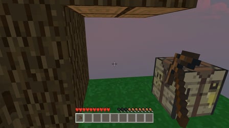 You spawn on a tiny grass island floating in the void. Use WASD to move around and hold down your mouse button to break dirt and wood blocks. On mobile, you've got virtual buttons on the left for walking and you tap-hold on the right side to mine. Punch trees first (classic Minecraft energy), collect wood, and open your inventory to craft basic tools. The 2x2 crafting grid will feel instantly familiar if you've played any survival game in the last decade.