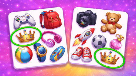 The mission is simple: Find the duplicate. Two cards flash on screen. Scan both sides. One item always repeats—that's your target. Click it fast. Score the point. Rounds are timed, so hesitation costs you.