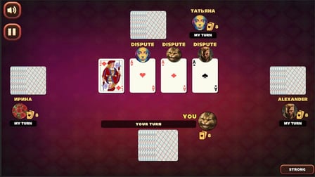 Drunkard Cards Online is an exhilarating card game where your strategic prowess and quick reflexes will be put to the test. The goal is simple yet challenging: get rid of all your cards by placing them on the field faster and smarter than your opponent. This dynamic and intense game offers a unique twist on traditional card games. With every move impacting the outcome, players must choose their tactics wisely. The online version of Drunkard Cards allows you to dive into this thrilling game without the need for physical playing cards. Whether you're on a desktop, Android, or iOS device, you can enjoy the excitement of Drunkard Cards Online anywhere, anytime. Play online for free without downloading and immerse yourself in a world of quick thinking and strategic gameplay.
