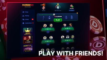 Durak Online 3D is a modern version of the classic Russian card game "Durak," offering online multiplayer functionality and 3D graphics for an enhanced playing experience.