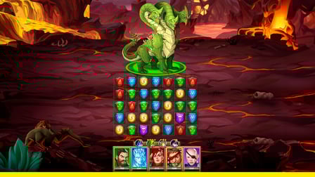 - Match 3 puzzles: Swap adjacent tiles to form a line of three or more identical tiles. Each match powers up your heroes to attack your enemies.