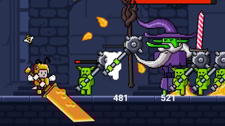 To play Knead the Goblins!, simply use your keyboard or touch controls to guide your character as you run through the game’s vibrant levels. Click or tap to jump and attack enemies. Your main goal is to move right, defeat foes, collect coins, and navigate through the unique biomes that present various challenges. Upgrade your gear with the coins you earn to improve your chances against tougher enemies and formidable bosses!