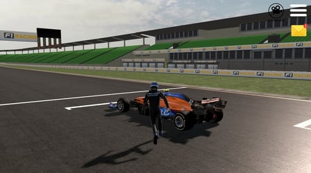 Honestly? It feels like a student project or an early Unity experiment. The visuals are basic—flat lighting, low-res textures on the asphalt, and that signature "cheap mobile game" look with stiff shadows and empty grandstands. The car model itself is decent enough (looks like a McLaren knockoff with Pirelli stickers), but the environment feels lifeless. There's a weird hub area where you can walk around as a driver avatar before hopping in the car, which adds zero value and just slows you down. The racing itself is functional but floaty—cars don't have much weight, and collisions with barriers feel more like bumper cars than F1. Audio is forgettable; generic engine sounds that loop endlessly. It's playable, but don't expect the polish of Real Racing or F1 Mobile.