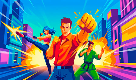 Playing Fight Club: Mega Fist is simple and engaging whether you’re on your computer or mobile phone! Just follow these easy steps: 1️⃣ Control the joystick in the center of the screen. 2️⃣ Direct your character towards the enemy to initiate combat. Your character will automatically attack when in range.