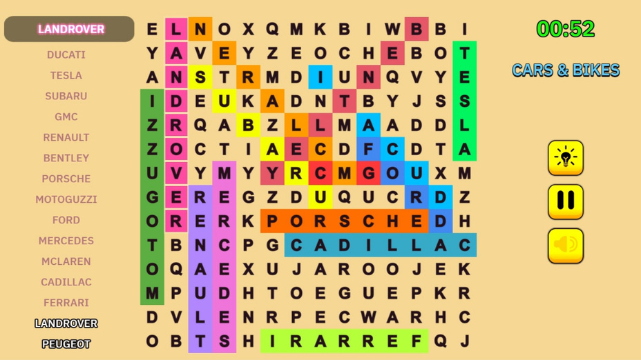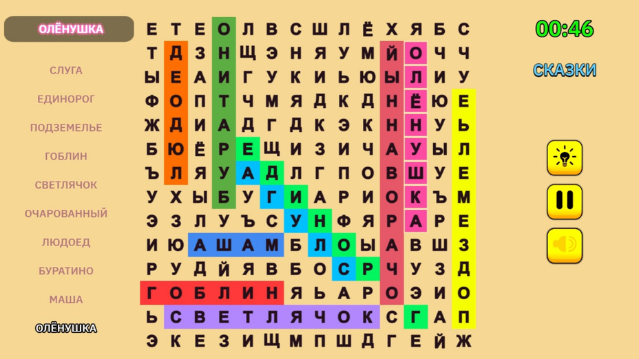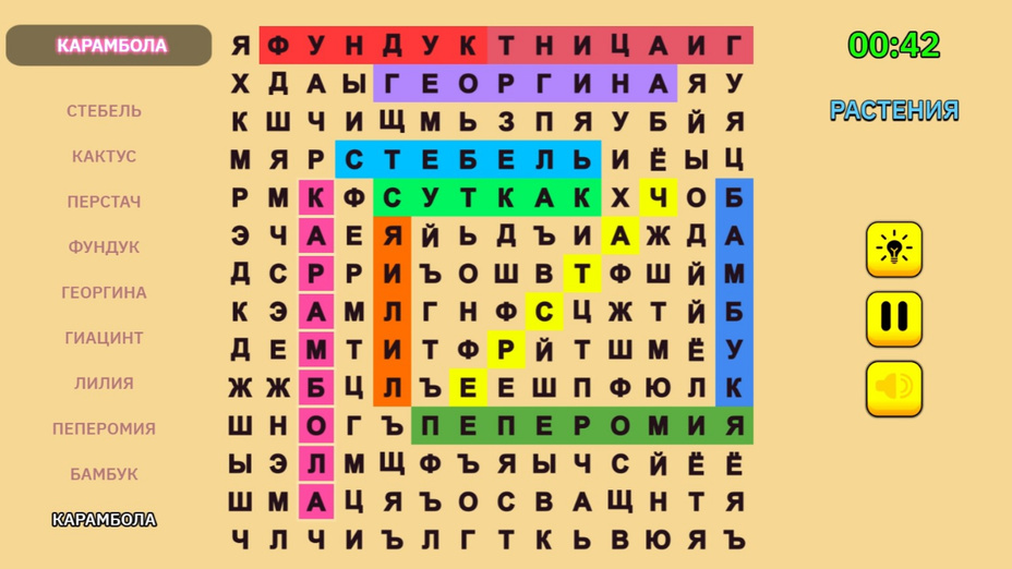 Fillwords: Find all the words is an exciting puzzle game where you can challenge yourself to find hidden words on a game board. Play online for free without downloading and immerse yourself in the atmosphere of brain training and vocabulary enrichment. This game is perfect for word game lovers who enjoy expanding their knowledge across various themes. With a "super mix" level that combines words from all themes, every gameplay session offers fresh and unique word combinations. The vibrant and intuitive interface makes the experience even more engaging, providing a delightful and colorful gaming environment. Whether you're playing alone or with the whole family, Fillwords: Find all the words is a great way to enhance your logic, attention, and vocabulary skills.