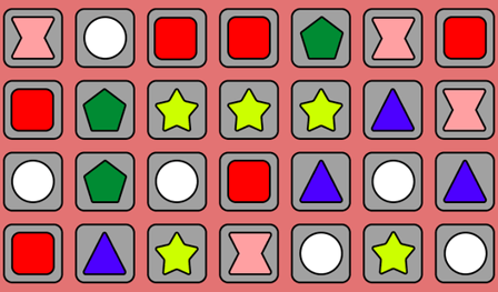 Start by scanning the 8x8 grid for three identical shapes in a row (horizontal or vertical). Swipe one shape into position to complete the line. The matched shapes vanish, new ones drop in, and your target counter updates. Simple. But here's the catch: you only have a fixed number of moves per level. So every swap counts.