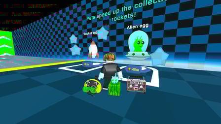 Use the spacebar or tap your screen to jump. Collect rockets by guiding your character toward them during jumps. The fan will assist your take-off, while Booster Pets can be purchased to enhance your collection speed.