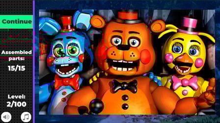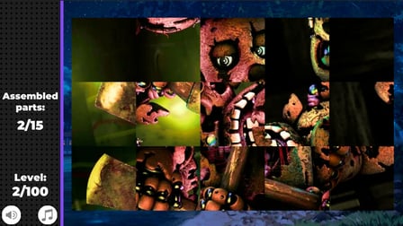 FNAF - Scary Puzzle is an exhilarating puzzle game where fans of the FNAF series can indulge in solving a variety of intricate puzzles. Dive into this captivating online experience for free, without the necessity to download, and explore the thrilling universe of mind-bending challenges. With visually appealing graphics and animations, this game encourages the development of logical thinking and visual memory, making it an excellent choice for children and teenagers alike. Available on desktop, Android, and iOS, FNAF - Scary Puzzle offers an engaging gameplay experience that will keep you entertained for hours.
