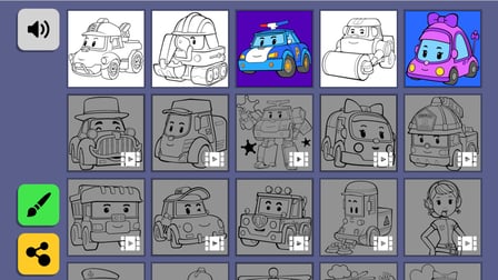 Playing Robocar Poli is as easy as pie! On your computer, simply use your mouse to click on the character page you wish to color. If you’re using a phone, tap on the image and select your colors from the palette. Fill each section of the characters by clicking or tapping to see your imagination come alive.