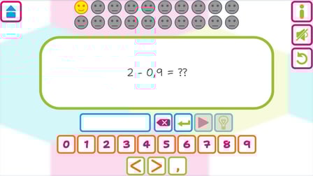 The controls for Decimals are straightforward. On a computer, use your keyboard to input answers or use the mouse to navigate between tasks. On a phone, tap directly on the onscreen options to select or input answers. Each correct entry brings you closer to successfully completing the task!