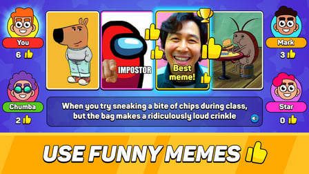 Welcome to MemeBattle: What’s That Meme?! Join the online battle and immerse yourself in a vibrant world of memes where humor leads the way. This innovative card game allows you to compete with other players using the funniest memes you can collect. Experience endless possibilities and laughter whether you're playing on your phone or computer.