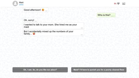 Use your mouse or touchscreen to select responses in conversations. Each choice is crucial, as they will influence your relationship with the maid. Pay attention to her emotional responses after every interaction to decide your next words carefully.