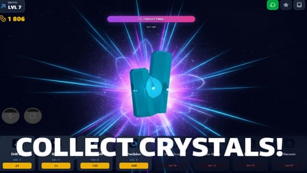 After destroying the rock, a crystal is revealed that needs to be collected. Each crystal has its own rarity - from common to mythic. The rarer the crystal, the more valuable it is. Earned gold can be spent on upgrades: increasing damage, automatic drilling, critical hit chance and multi-hits.