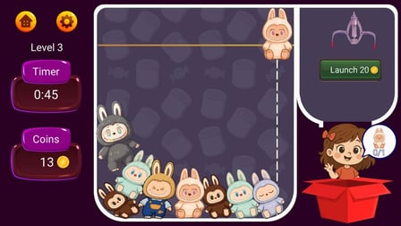 To get started with Grab Labubu on your phone, simply tap the screen to drop a Labubu. Match two similar dolls to merge them into a new character. If you’re playing on a computer, use your mouse to click and drop the Labubus. Strategize your drops to complete levels and achieve high scores!