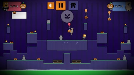 Graveyard Wars is set in a haunted graveyard filled with pumpkins and eerie obstacles. The game offers a unique blend of competition and customization, with players able to choose from a variety of hats to personalize their characters. The primary goal is to collect 10 pumpkins faster than your opponent, making it a test of both speed and strategy. The game's spooky ambiance and fast-paced gameplay make it a standout choice for fans of two-player games.