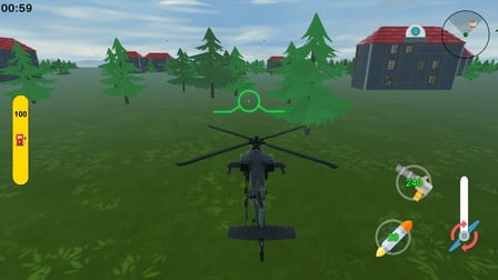 While airborne, your controls are intuitive: Mouse moves the helicopter and aims your weapons. Use Spacebar to fire rockets and Shift for machine gun fire. Manage your flight to evade attacks and maintain accuracy for those critical hits.