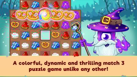 "Heroes of Match 3" is a match 3 puzzle game that combines strategic gameplay with character development, allowing players to defend their kingdom through colorful combinations of candies and pastries.