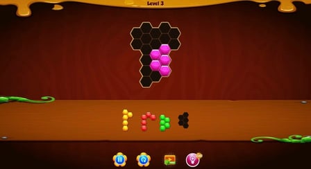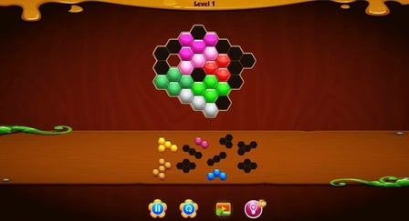 On computer, navigate the game using mouse clicks to select and position hexagonal blocks. For mobile devices, controls are touch-responsive; simply tap on the pieces to move and drop them onto the playing field.