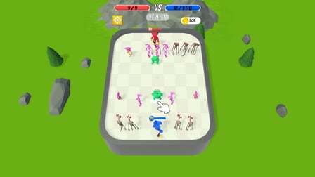 To embark on your adventure in Huggy Battle Simulator on a computer, simply visit the game page and choose your totem. Use the mouse to drag and drop your squad members into position. If you’re playing on your phone, tap to select and place your characters smoothly on the battlefield. Utilize various skills and upgrades as you progress.