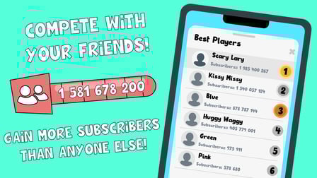 Step into the vibrant world of Huggy Waggy Became a Blogger, a catchy, free clicker/tapper game that invites you to join Huggy Waggy and Kissy Missy on their blogging adventures! This engaging title allows players to explore gameplay that revolves around enhancing your chosen character's online presence.
