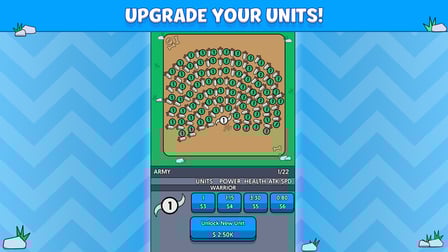 Engage in captivating battles where strategy is paramount. The core mechanics involve upgrading fighters, managing resources post-battle, and making key tactical decisions that propel your army forward. The visuals are engaging, with an emphasis on vivid colors and dynamic animations that breathe life into each battlefield encounter.