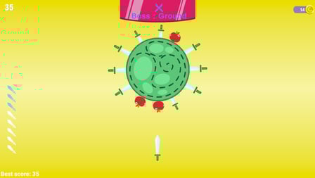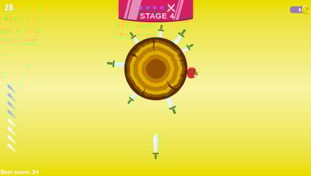 Knife Challenge is an exciting casual arcade game where you can test your precision and focus by throwing knives at spinning targets. Play online for free without downloading and immerse yourself in the atmosphere of this captivating game. The goal is straightforward but challenging: avoid hitting already lodged blades and obstacles, making each throw a test of skill and accuracy. With beautifully designed 2D graphics, Knife Challenge offers a visually appealing experience that keeps players engaged. The game is suitable for players of all ages, promising endless fun and a perfect way to sharpen your reaction time and strategic thinking.