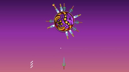 Begin your Knife Smash adventure by clicking on the game. Your objective is to hit the spinning target with your knives. As you progress, collect apples to gain currency for unlocking new knives or continuing from checkpoints. Be mindful of the target's speed and direction changes, as these will challenge your reaction time and precision.