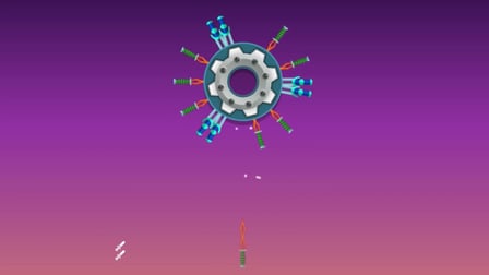 The main objective is to hit the spinning target with your knives, collect apples, and unlock new knives.