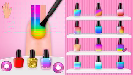 Navigate the game easily using your mouse or touch screen. Click or tap to select nail shapes, polish colors, and decorative elements. Zoom in and out to view your creations in detail, and take photos of your designs whenever you're ready!