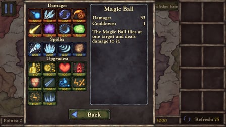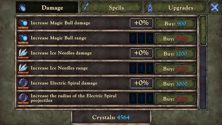 - Use the mouse to select spells and upgrades