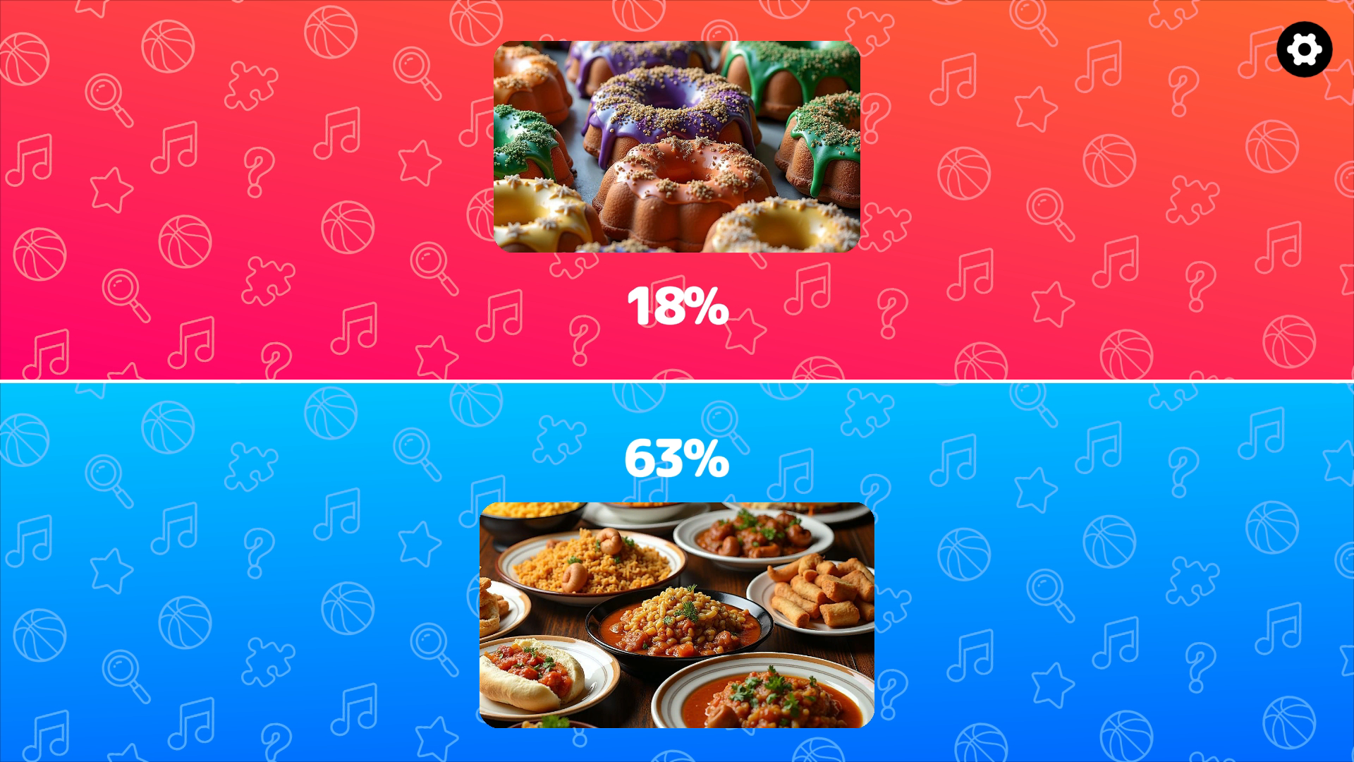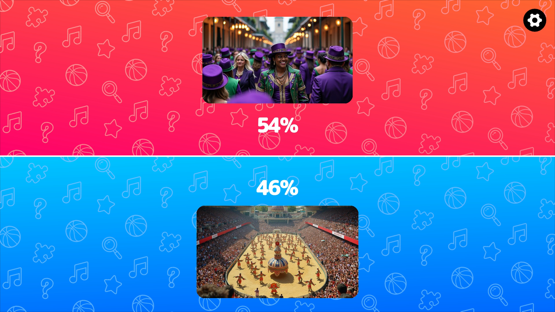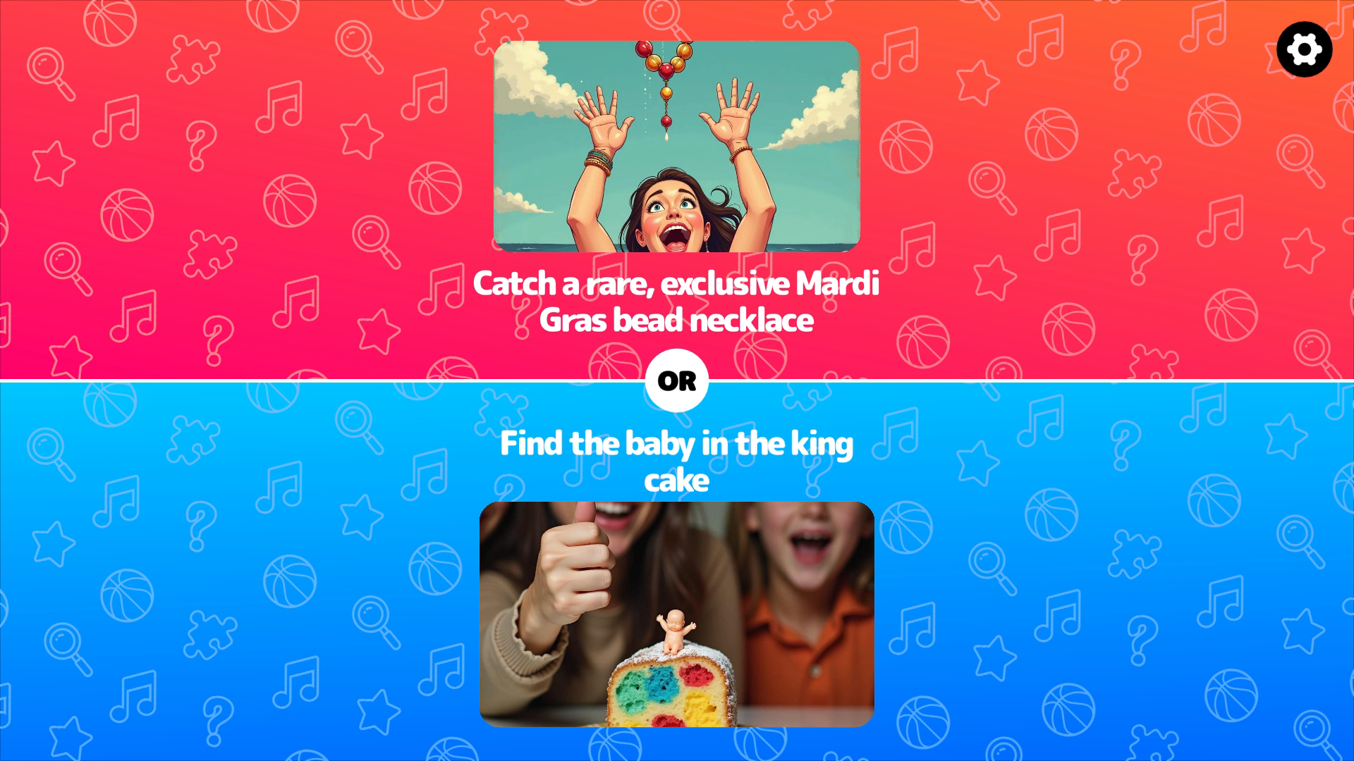 "Would You Rather - Mardi Gras" stands out by blending the classic decision-making game with the lively essence of Mardi Gras. Key elements include a vast array of unique "Would You Rather" questions, each crafted to reflect the joyous and unpredictable nature of the festival. The game's real-time voting feature enhances its interactive appeal, allowing players to see how their choices align with others.