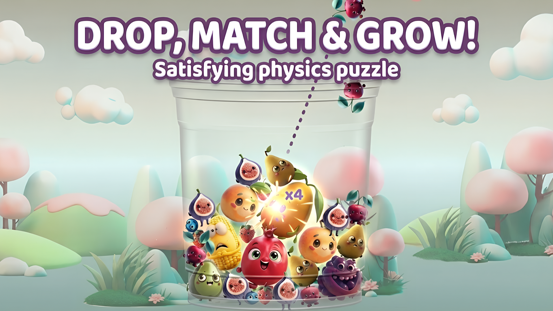 Kick off your fruity adventure by throwing fruits into the glass. Click for a quick throw, or hold and move for a more precise aim with the laser sight. Merge identical fruits to create new ones and unlock unique characters. Keep the glass filled but beware of overflow—if a fruit falls out, the game ends. Strategize your throws and manage the limited space wisely to progress through the levels.