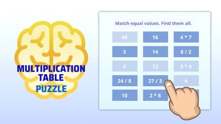Multiplication Table Puzzle is an engaging educational game where you can strengthen your multiplication skills and explore various mathematical operations like addition and subtraction. Play online for free without downloading and immerse yourself in the world of math challenges. This game is perfect for kids, teens, and adults looking to enhance their math skills in a fun and interactive way. Whether you're at home or on the go, you can access this game on your desktop, Android, or iOS platforms, making it a convenient companion for learning. Dive into this brain-training adventure and enjoy a seamless learning experience.