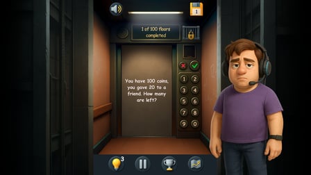 Prepare for an adventure like no other in Mysterious Elevator, where your wits are your only allies! Trapped within a towering skyscraper with 100 floors, you must engage in thrilling mathematical riddles and logical challenges to escape. The Keeper of Numbers, a witty guardian, presents you with puzzles that demand sharp thinking and swift decision-making. Can you navigate through each floor while solving problems that range from basic arithmetic to complex logic traps? With every challenge you conquer, the path to freedom becomes clearer, but beware: a single mistake could plunge you back!
