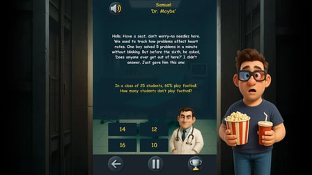 You can expect a mix of simple arithmetic problems, tricky logic puzzles, and brain teasers designed to challenge your cognitive skills and keep you engaged!