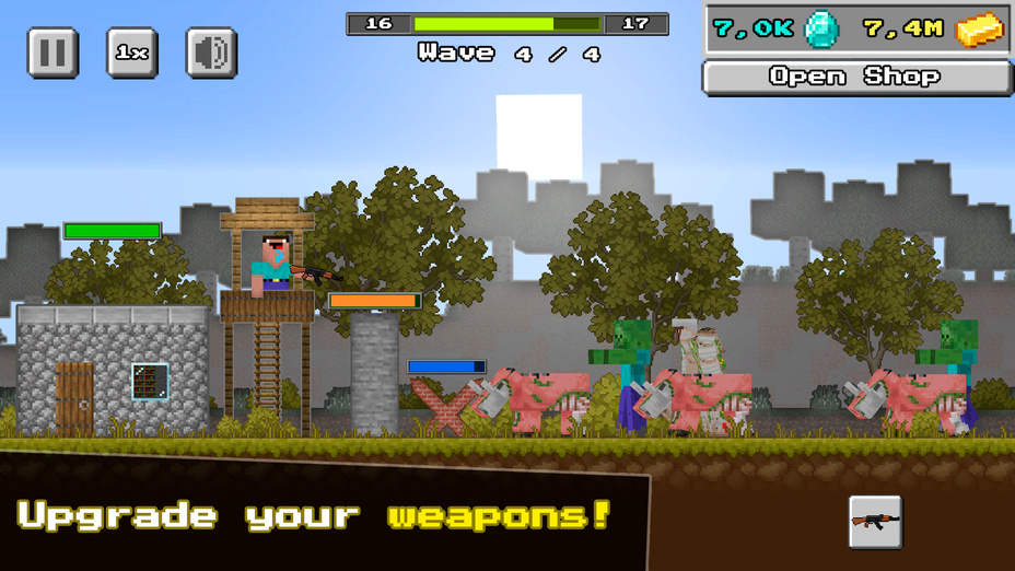 It's an action-packed arcade game where players, as a noob, must defend against various mobs, including monsters and zombies, using strategy and skill.