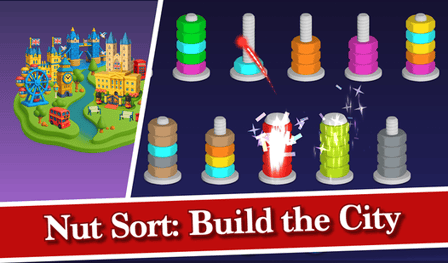 Nut Sort: Build the City immerses players in a charming, colorful environment where each puzzle offers a rewarding challenge. The visuals are playful and engaging, enhancing the overall experience of sorting with a purpose: to build beautiful cities. The emotional draw comes from watching your dreams come to life with each successful level completion.