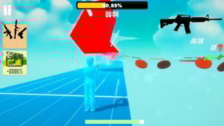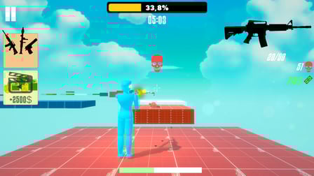 You’ll start with a variety of firearms, including pistols, and unlock powerful options like RPGs and miniguns as you progress through the levels.