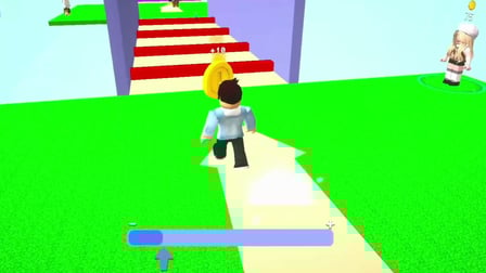 Visually, it's rough around the edges—low-poly models, oversaturated greens and purples, aliasing everywhere. It looks like someone's first Unity project or a basic Roblox template with a size gimmick slapped on. The audio is forgettable—generic upbeat loops that fade into background noise fast. The gameplay itself? Mindless and breezy. You're not solving puzzles or fighting bosses, just adjusting a slider and running forward. It's the gaming equivalent of a fidget spinner: satisfying for about 15 minutes, then you forget it exists.